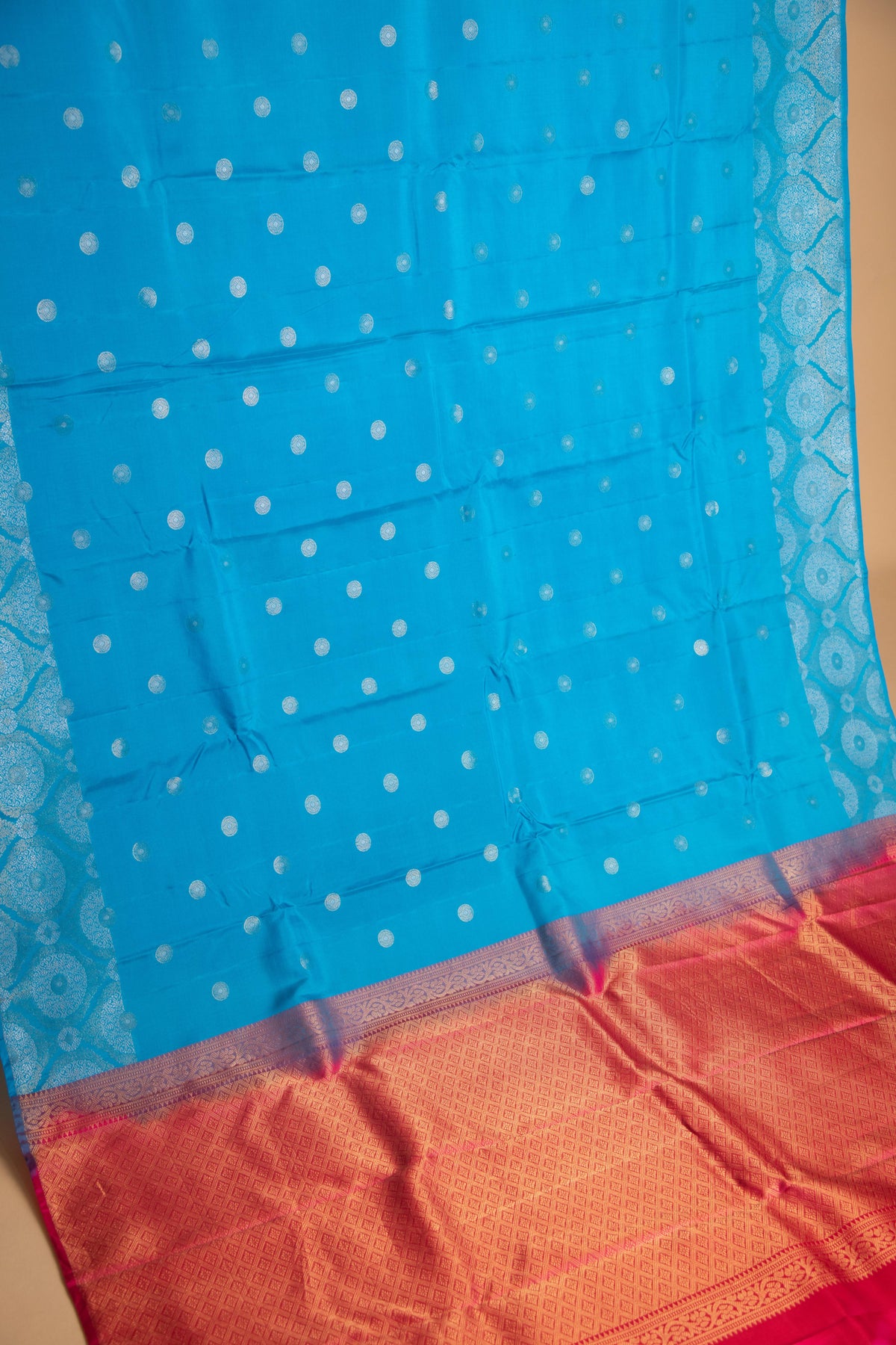 5. Wash separately: To prevent colour transfer, wash the main body of the saree separately from the zari (border and pallu), as they may be dyed differently.