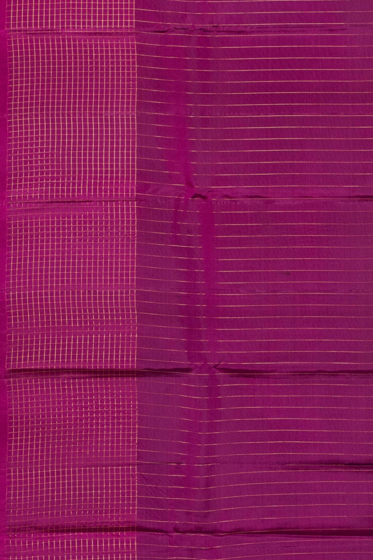 Navy blue pure touch silk saree is woven with rudraksham buttas with purple muthu seer kattam woven borders with contrast purple rich pallu and blouse. Blouse is shown in the last image
