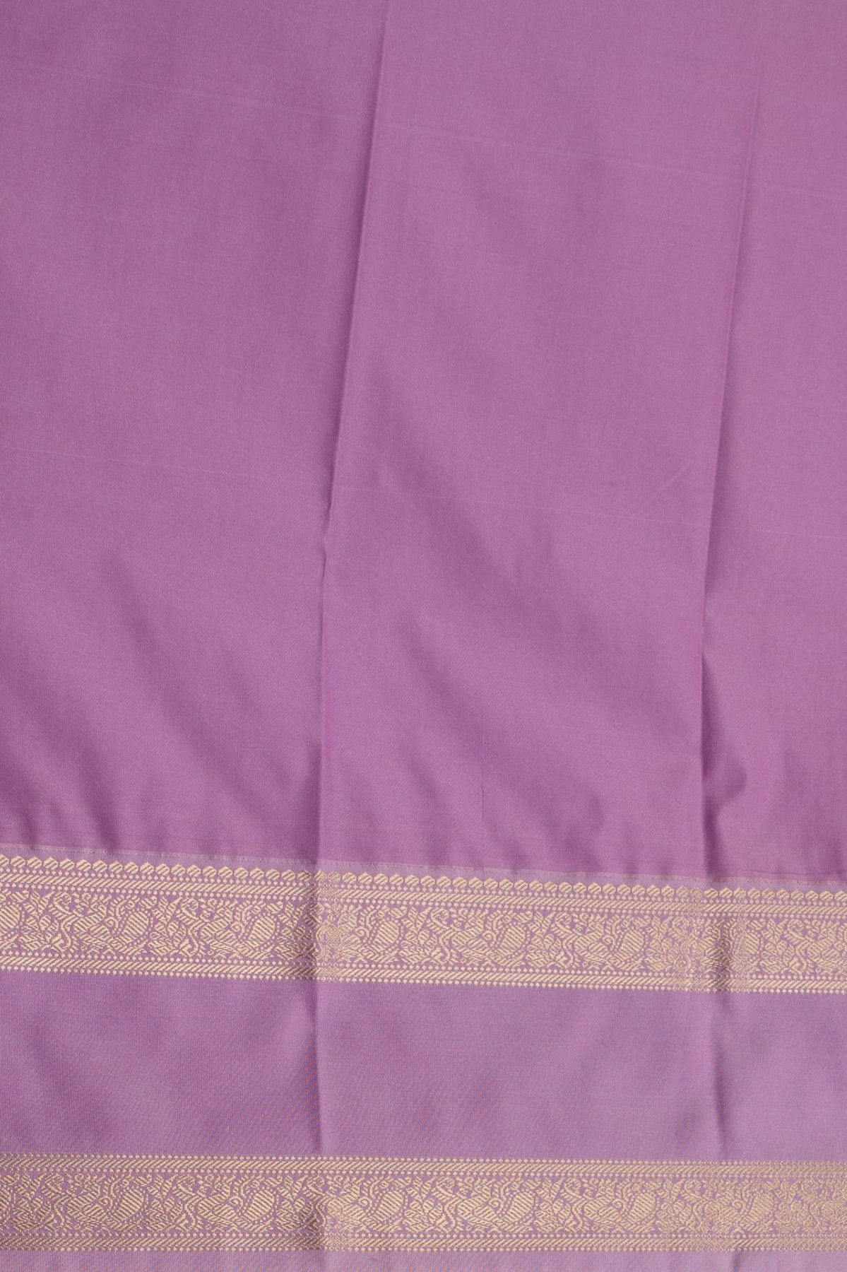 The entire Chartreuse Green body is intricately woven with a fine self-color check or square grid pattern. The weave gives the fabric a beautiful texture and a shimmering, almost metallic luster, allowing the vibrant green to truly pop. Lilac Border: The edge features beautiful parallel bands of Silver Zari weaving, providing a luxurious finish against the soft lilac base. The pallu is a masterpiece, showcasing a lovely color gradient transition from a subtle pink/peach hue into the main Lilac tone. The body of the pallu is woven with a dense, subtle self-pattern in rose gold Zari, giving it a rich texture and an opulent, shimmering metallic effect. Last image shown is the blouse.