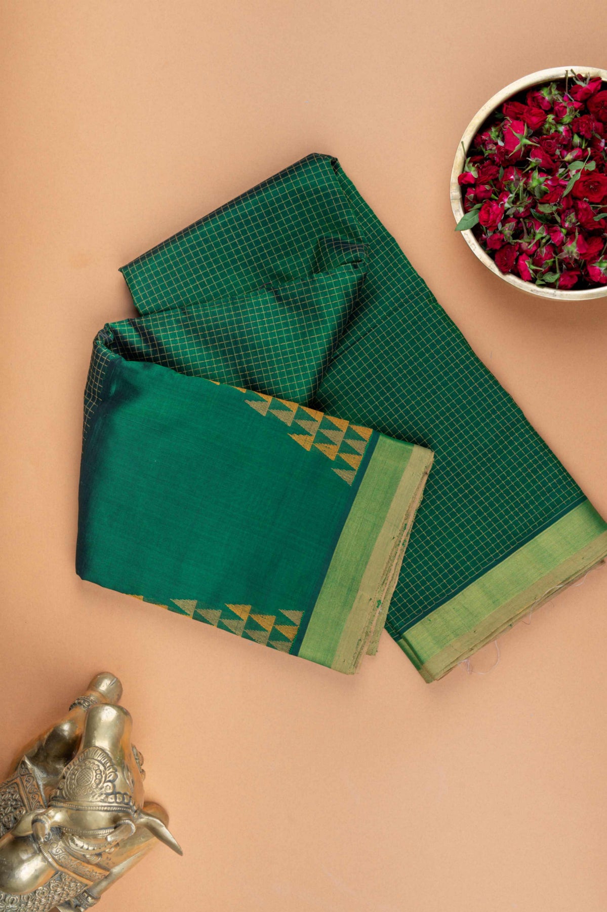 Green temple border silk cotton saree