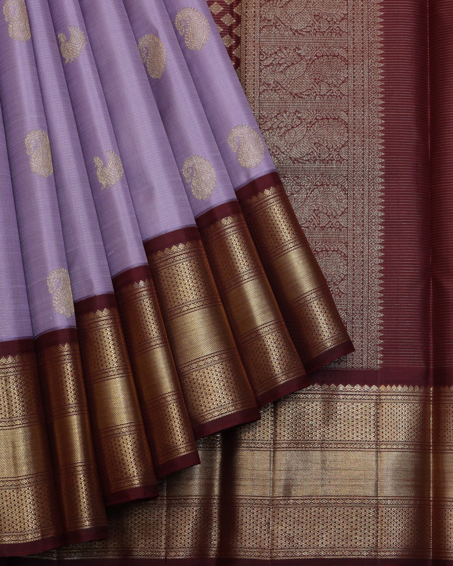 Lavender and Maroon vairaoosi pure zari silk saree