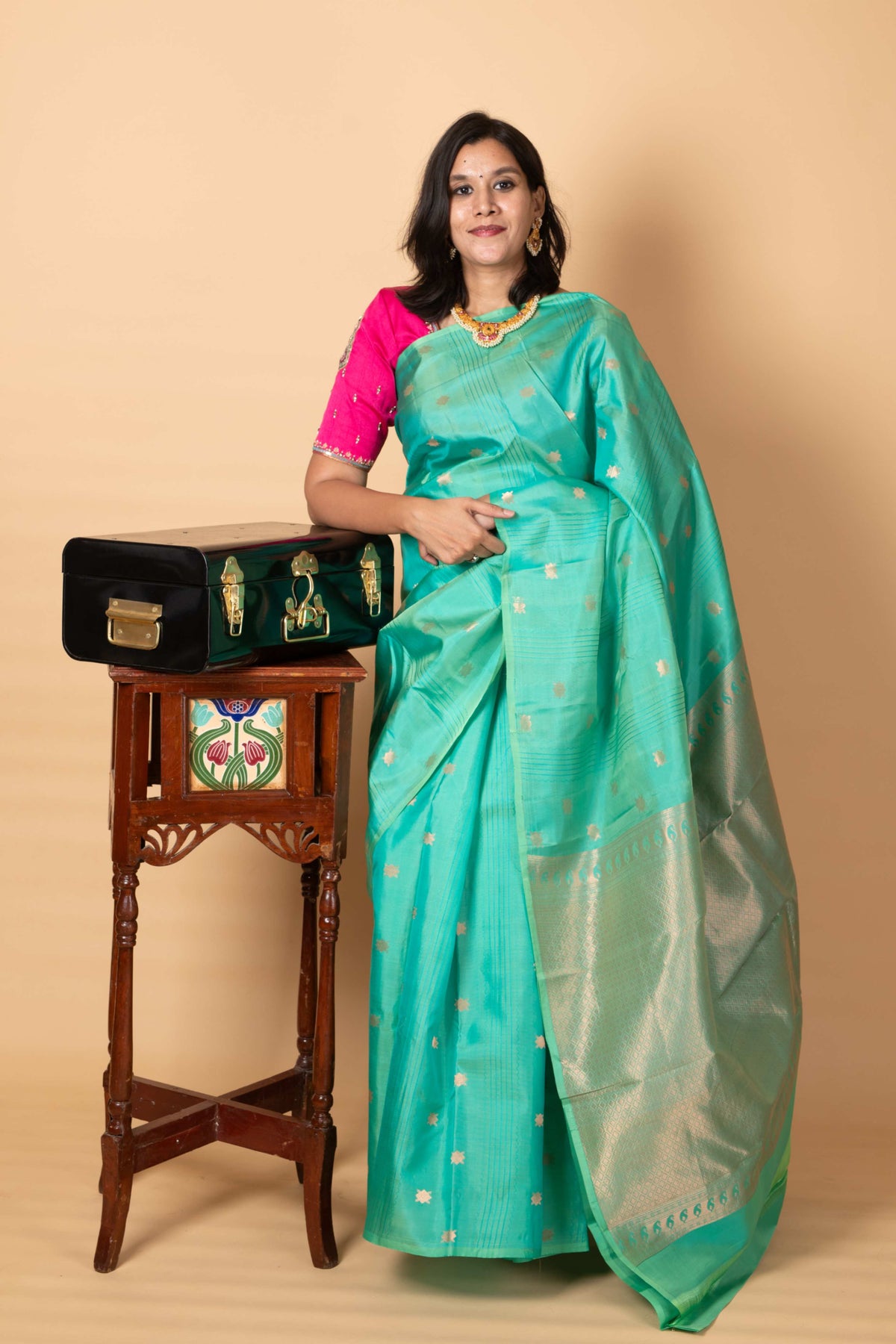 4. No Washing Machines or Dryers: Please never machine-wash or tumble dry your silk saree. These methods can severely damage its fabric and zari work.