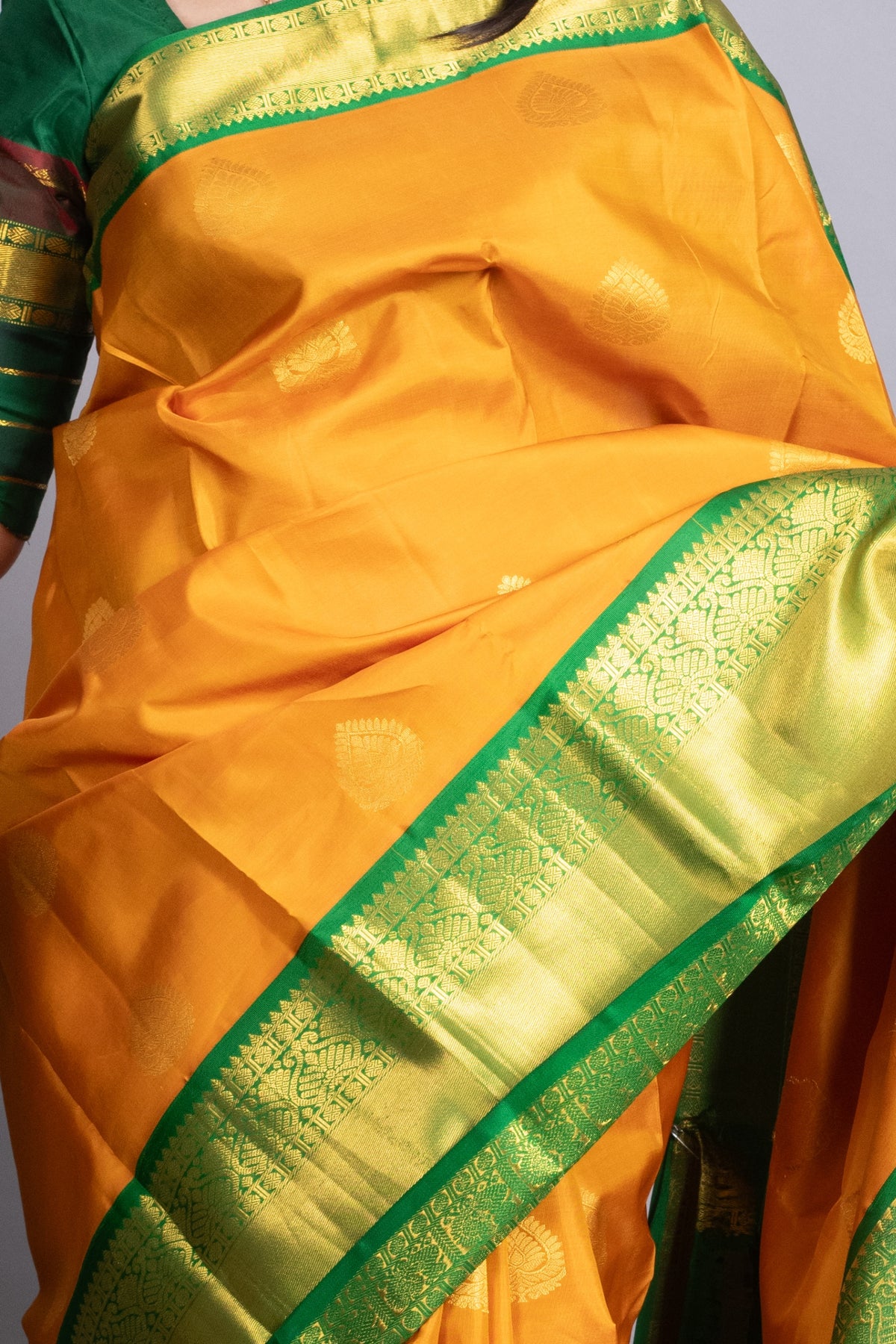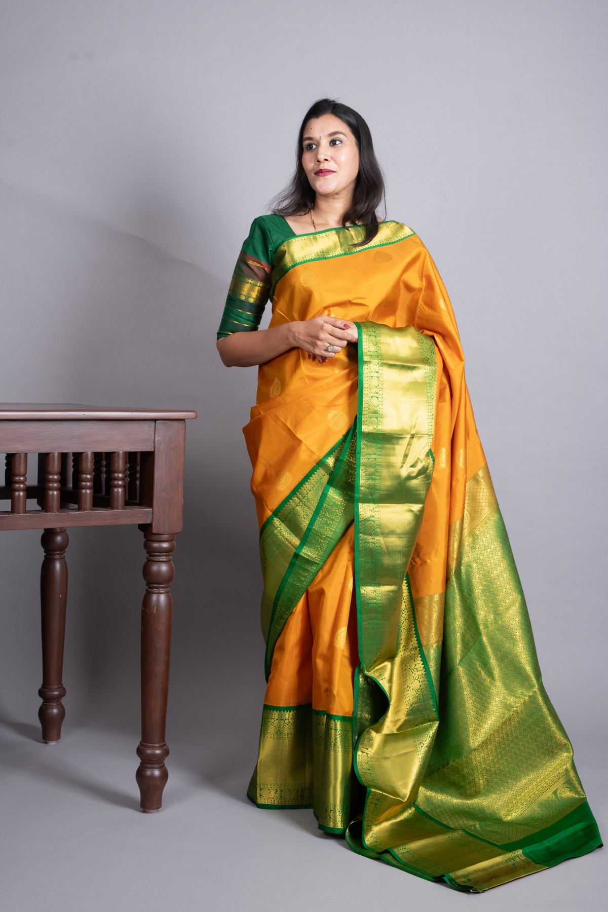 Turmeric Yellow and Forest Green Pure Kanjivaram Silk Saree