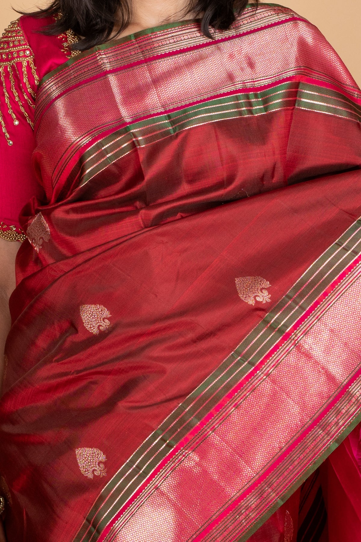 Pink and maroon silk saree