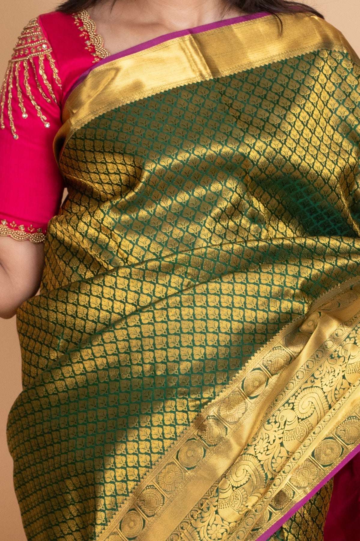 Forest Green and Rani Pink Kanjivaram Pattu Saree
