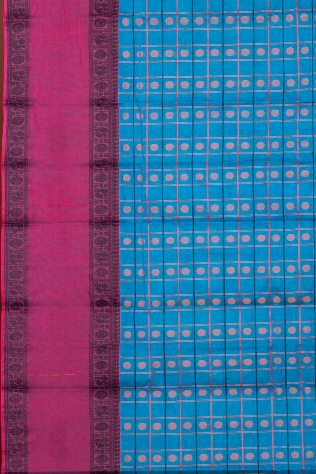 Blue And Pink Retta Pettu Kanchi Cotton Saree