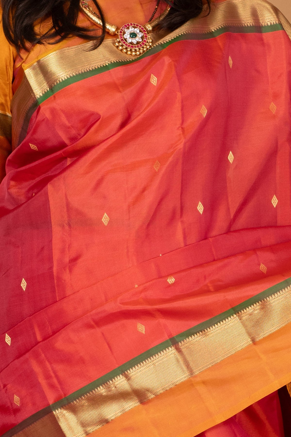 Dual Tone Orange and Dual Tone Yellow Pure Kanjivaram silk saree