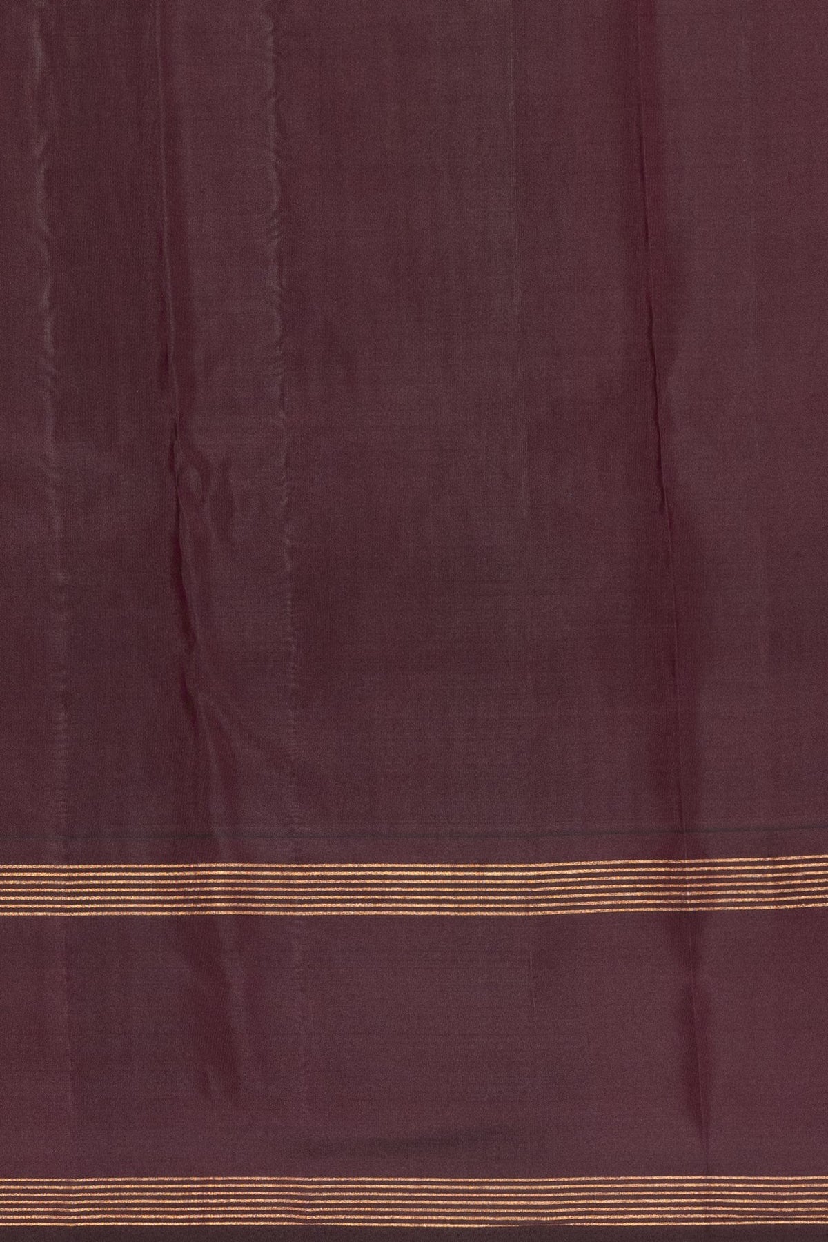 Raisin Purple Pure Kanjivaram Silk Saree. This exquisite piece embodies timeless luxury, featuring a rare and deeply saturated purple hue that transitions between deep brown and rich wine depending on the light. crafted from the highest quality pure silk, known for its soft hand-feel and magnificent drape. The main field of the saree is intricately patterned with delicate, closely spaced Gold Zari buttis (small motifs) that offer an all-over sparkle and texture, ensuring elegance from every angle. The saree is finished with a stunningly wide, contrast-rich Gold Zari pallu and border. The Zari is densely woven with traditional Kanjivaram motifs, creating a regal, dramatic flair that makes this saree perfect for centerpiece occasions.