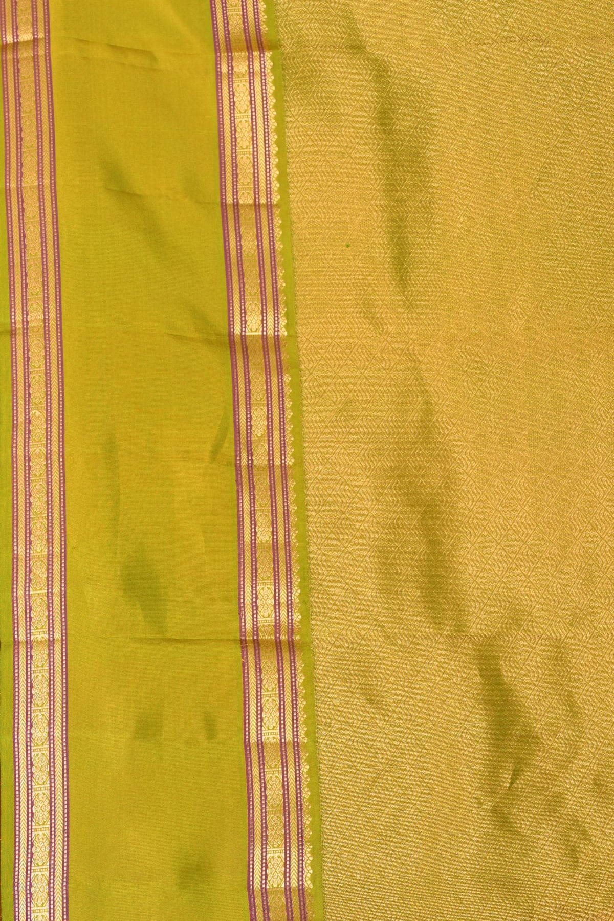 Royal Yellow and Dual Tone Green Retta Patta Border pure kanchi silk saree