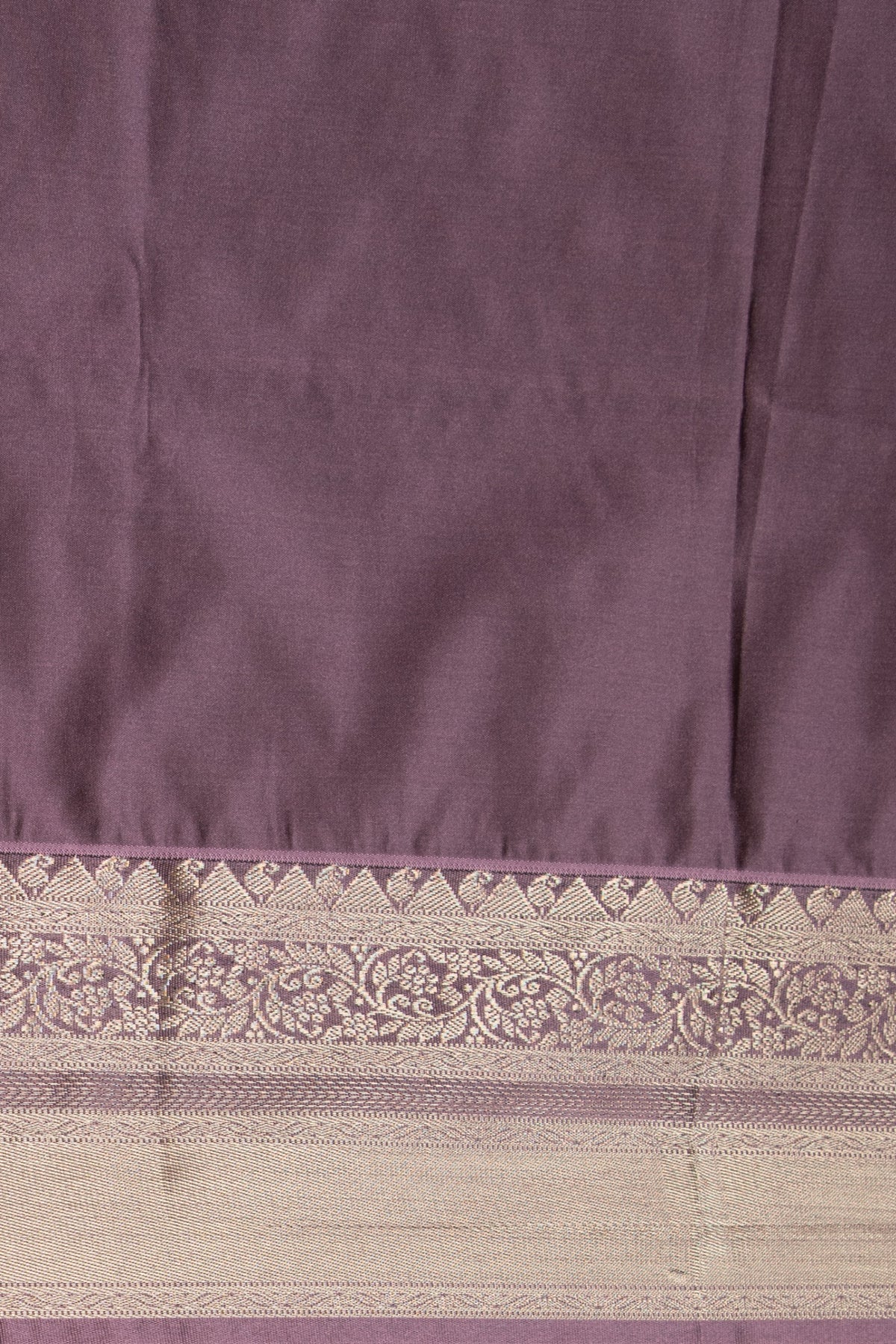 The bright yellow field of the saree is delicately textured with fine, scattered floral buttas woven in a subtle self-color or pale silver thread. This intricate detailing adds shimmer and movement to the fabric, ensuring the body catches the light beautifully. Border: The edge is framed by a gorgeous band of Silver Zari weaving, featuring traditional ornamental motifs against the purple base. The pallu presents a sophisticated gradient, shifting from a lighter Lavender into a deep, rich Violet or dark Mauve. It features classic bands of weaving, including intricate geometric patterns and a broad, textured band near the end. The transition area between the yellow and purple is woven with a shimmering metallic thread, highlighting the two-tone structure. Last image shown is the blouse.