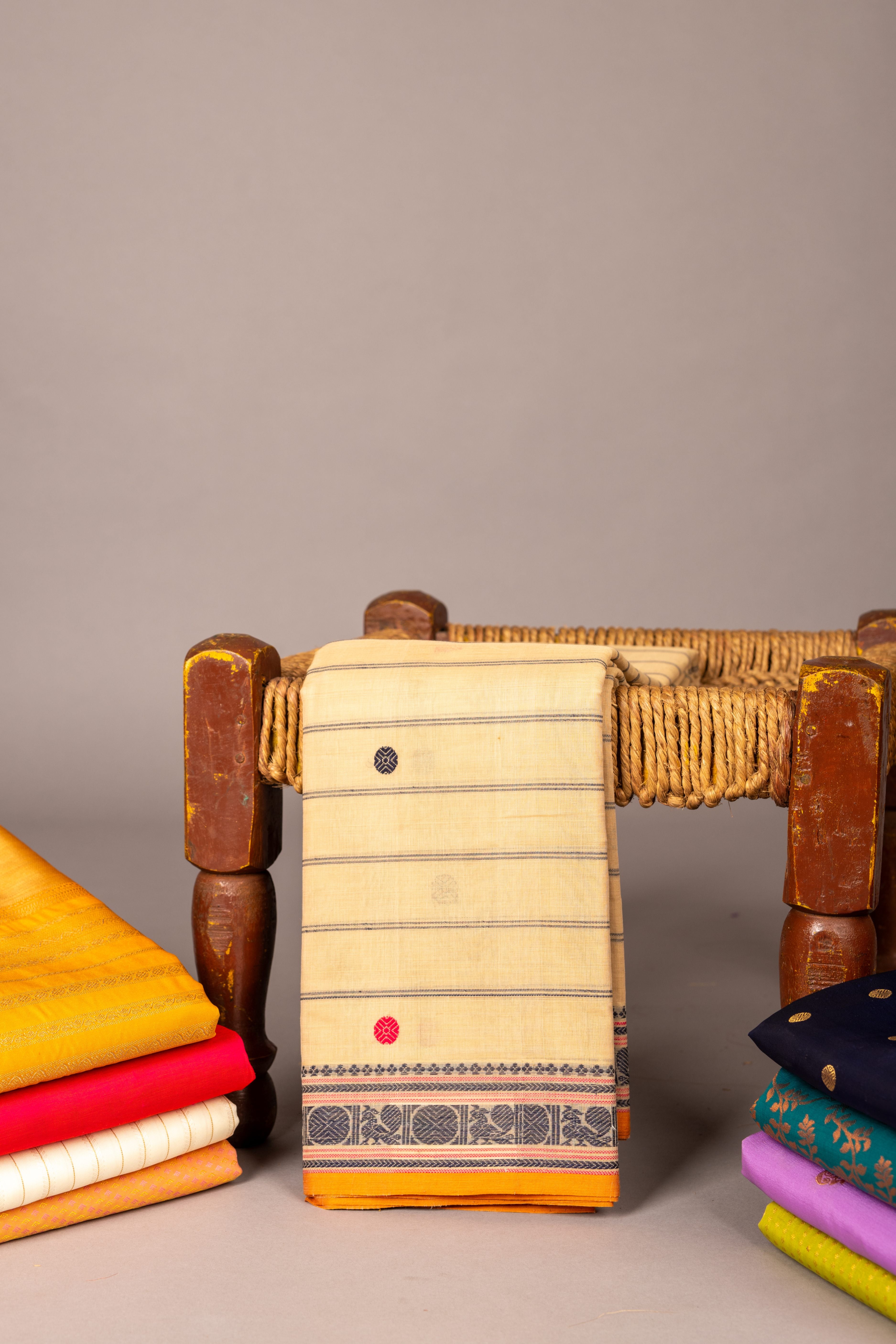 Wrap your saree in a soft, breathable cotton cloth or bag. Avoid plastic covers — silk loves to breathe.