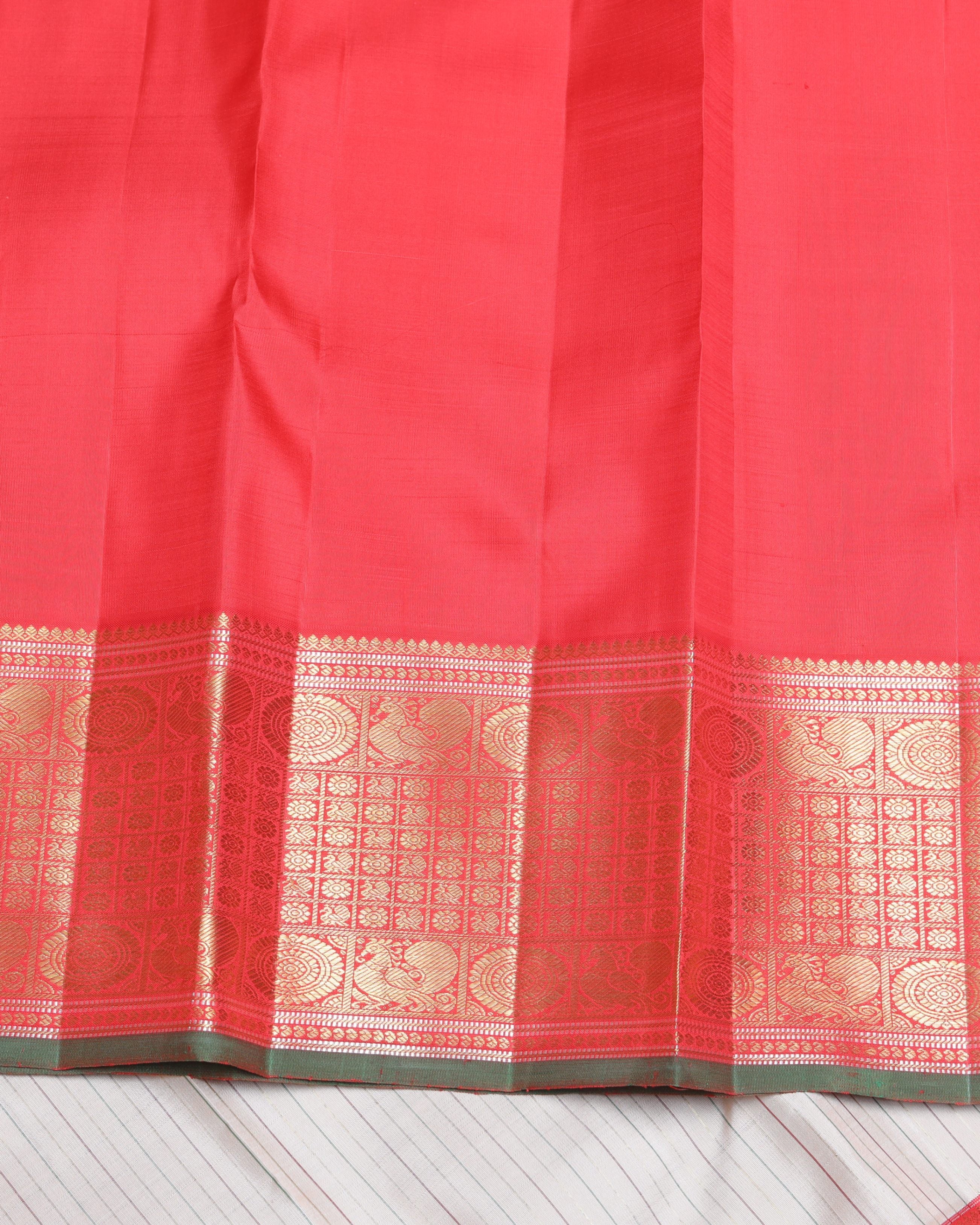 Blush Pink and Red pure zari silk saree