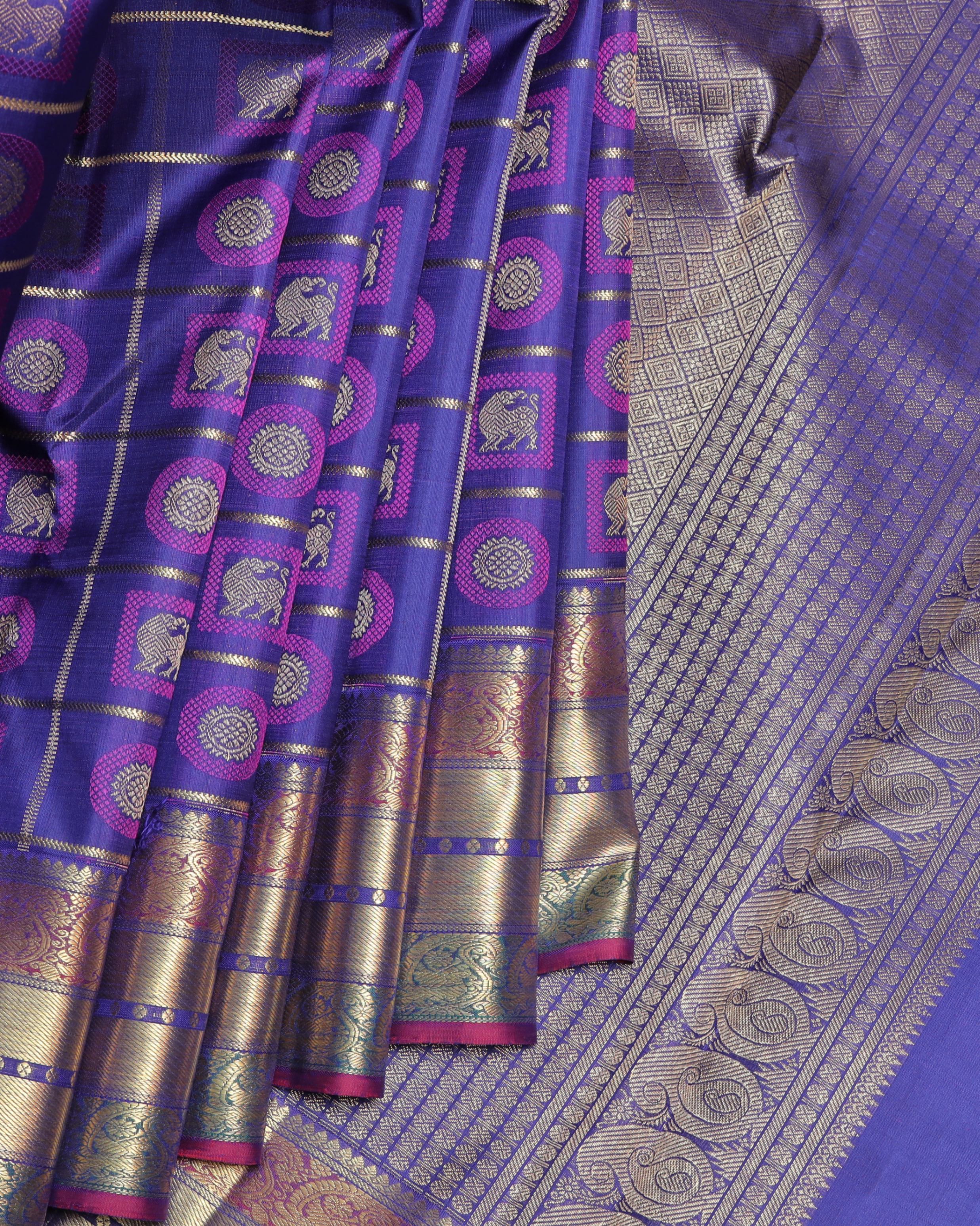 Saree Colour: Bright Blue Zari: Gold Weaving Technique: Traditional Weave Blouse Colour: Bright Blue