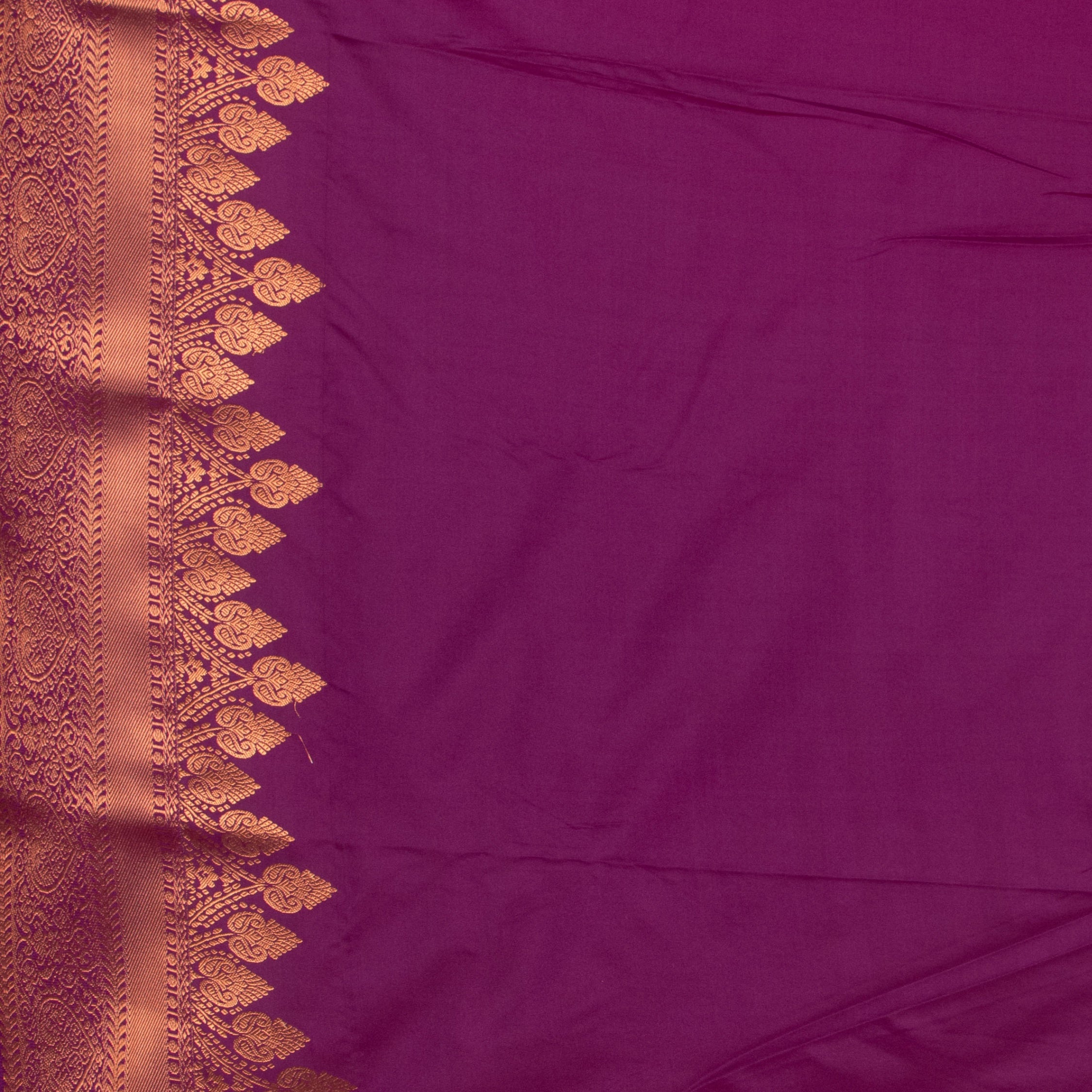 Saree Colour: Fire engine red Zari: Rose gold Weaving Technique: Butta weave Blouse Colour: Purple