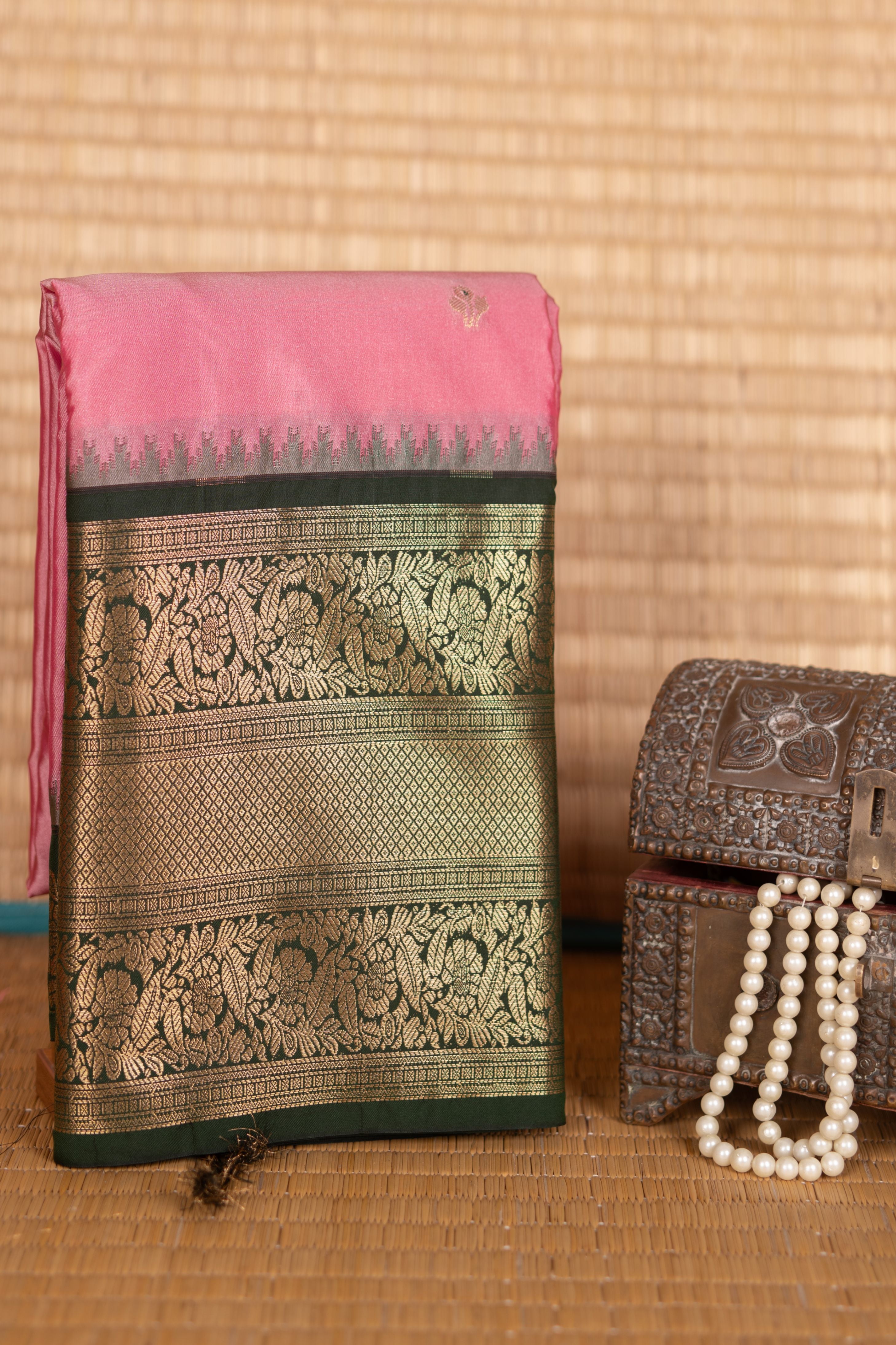 Saree Colour: Light Pink Zari: Gold Weaving Technique: Korvai Weave Blouse Colour: Green