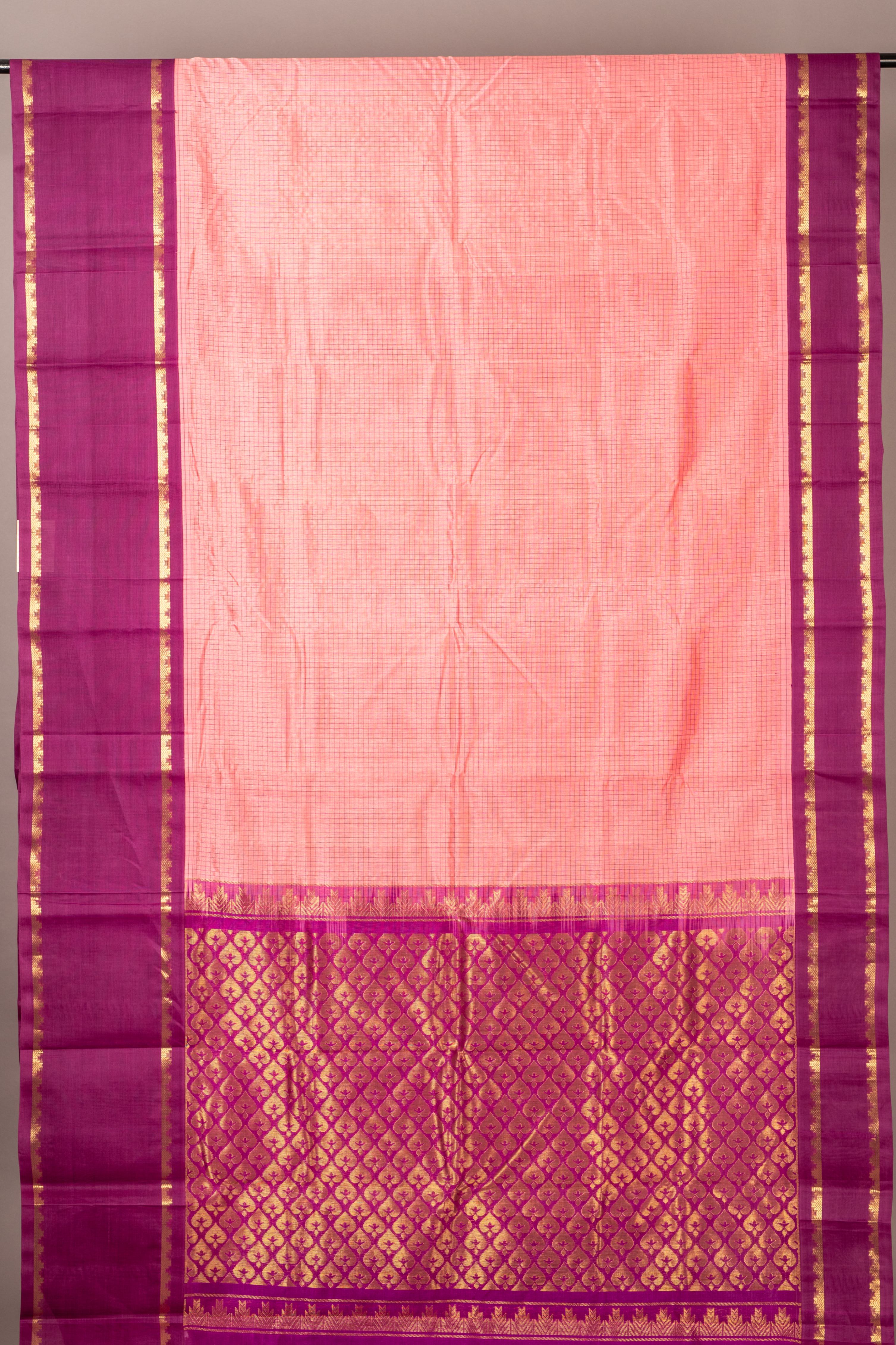 Saree Colour: Flamigo Pink Zari: Gold Weaving Technique: Korvai weave Blouse Colour: Purple