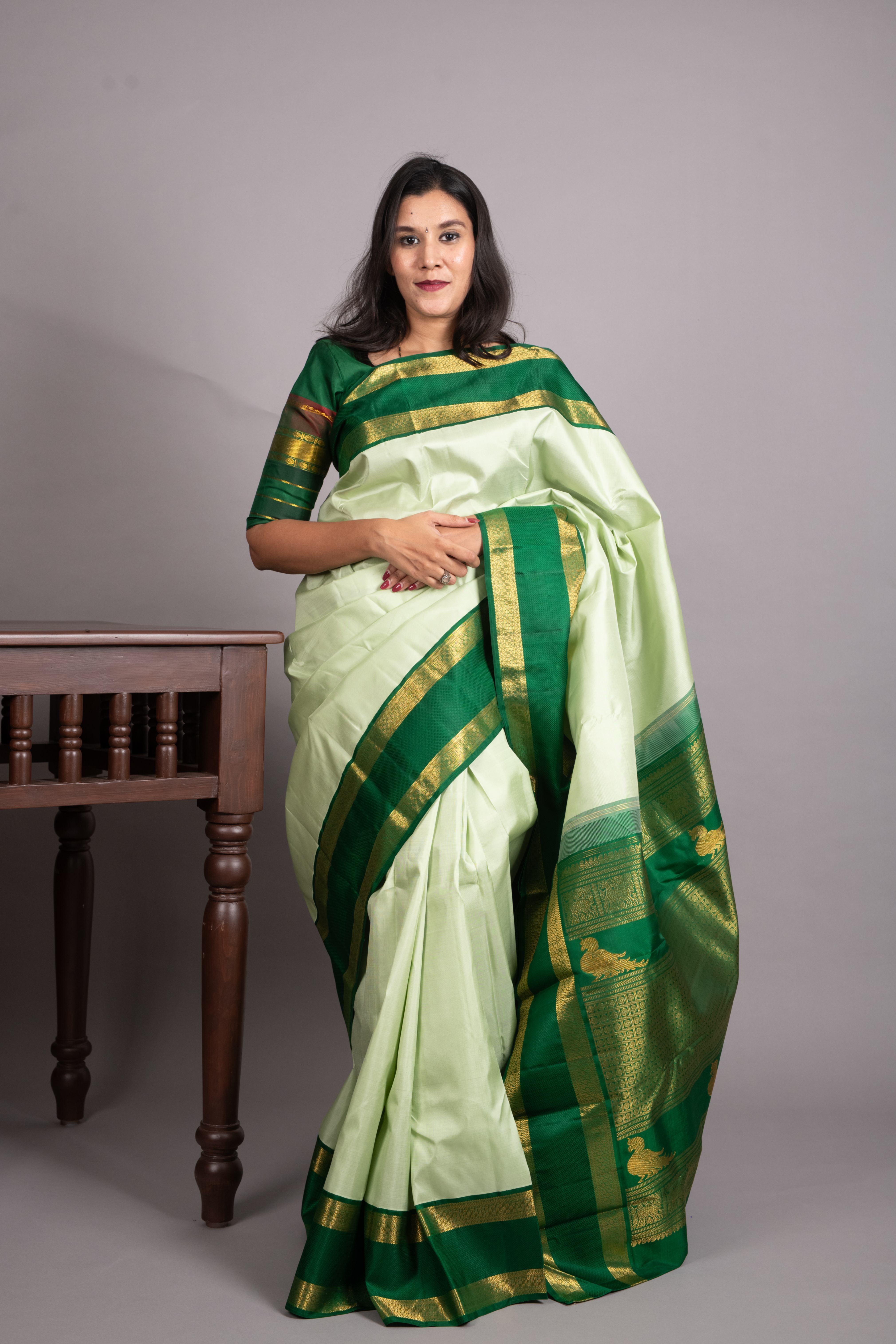 Mint Green and Forest Green Pure Kanjivaram Silk Saree