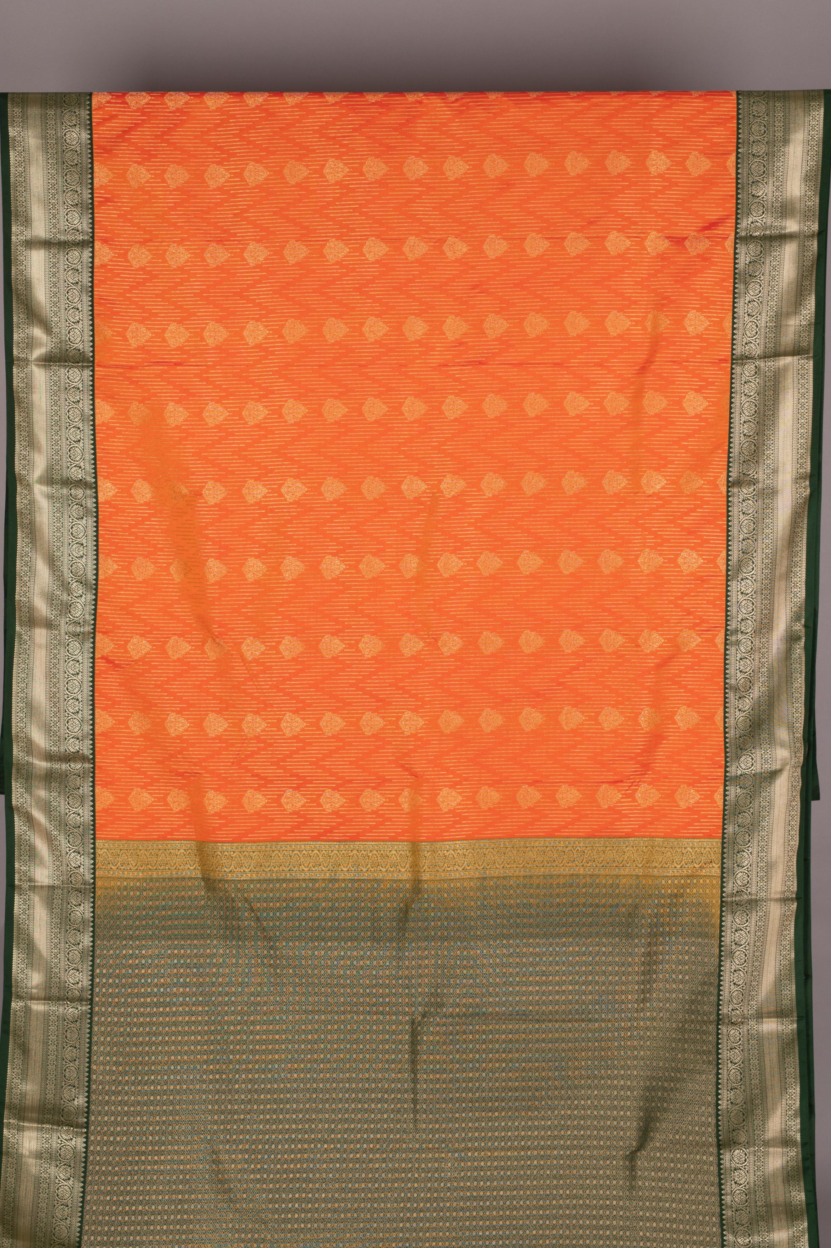Saree Colour: Orange Zari: Gold Weaving Technique: Korvai Weave Blouse Colour: Green