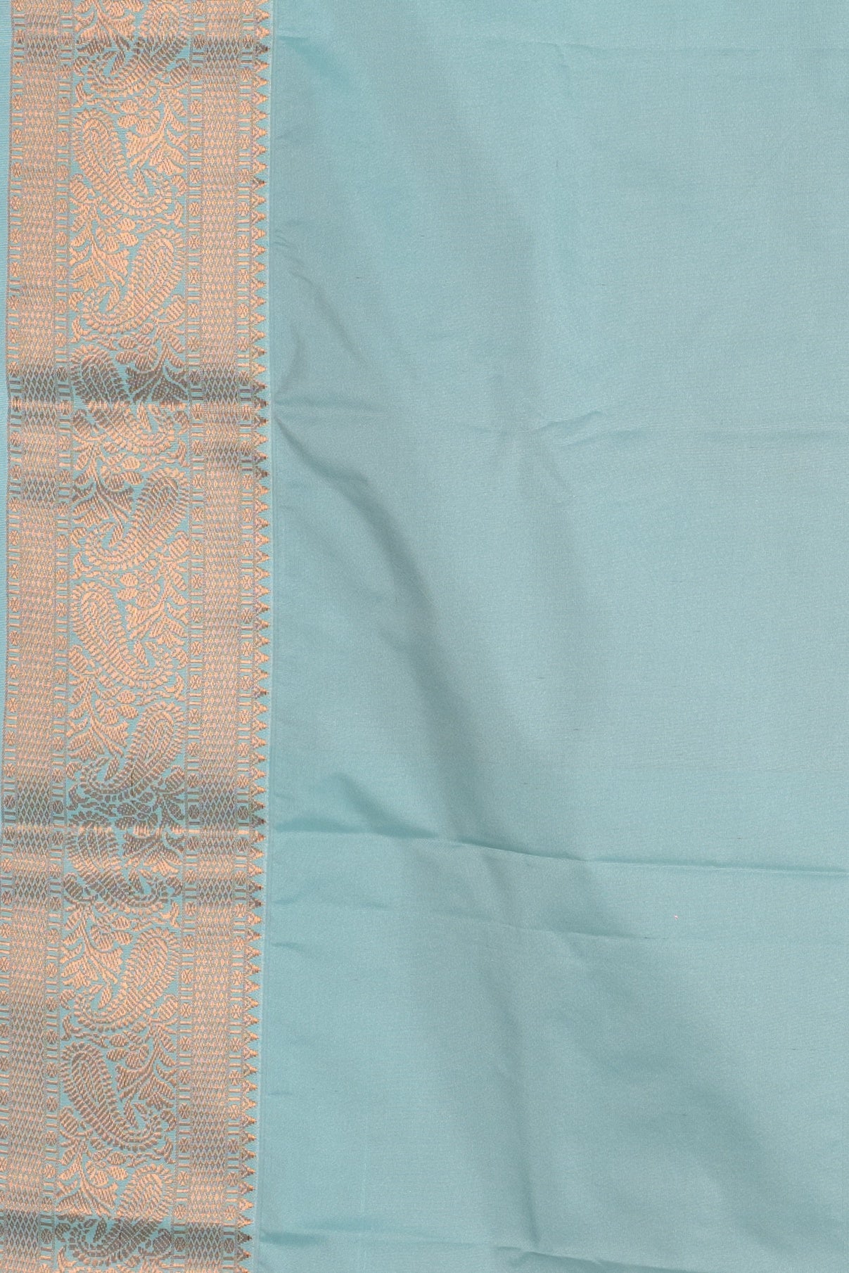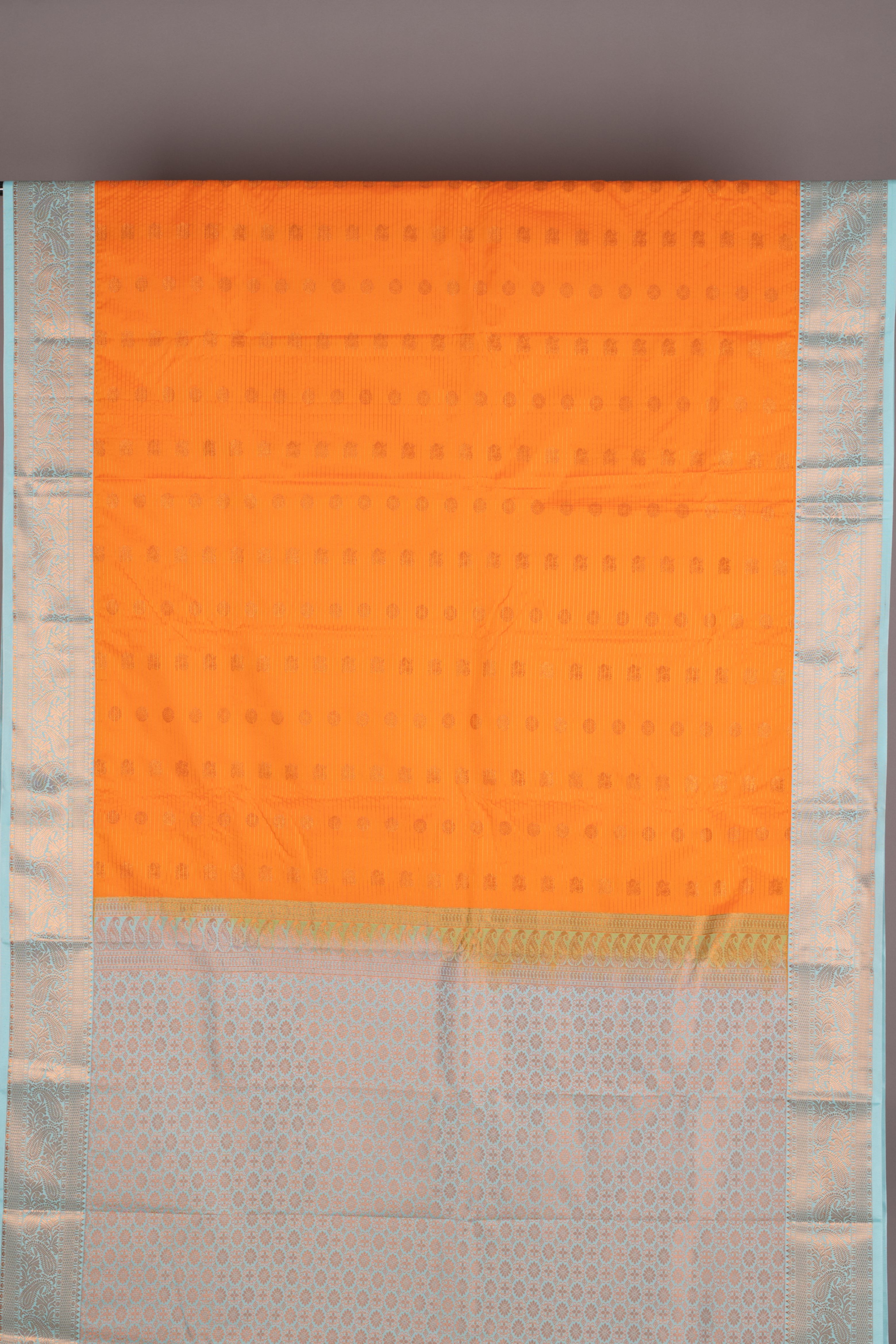 Saree Colour: Orange Zari: Korvai Weave Weaving Technique: Gold Blouse Colour: Sky Blue