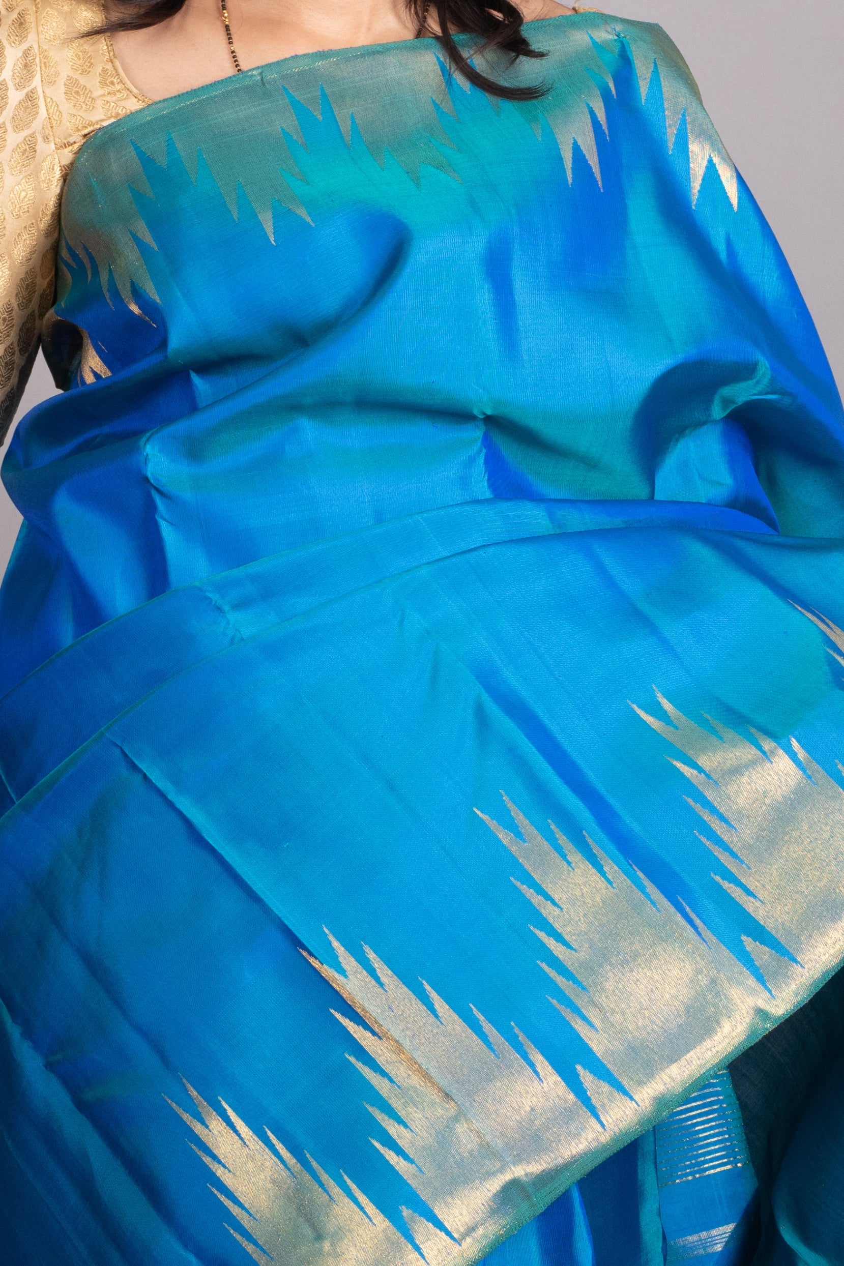 Saree Colour: Peacock Blue Zari: Gold Weaving Technique: Traditional Weave Blouse Colour: Peacock Blue