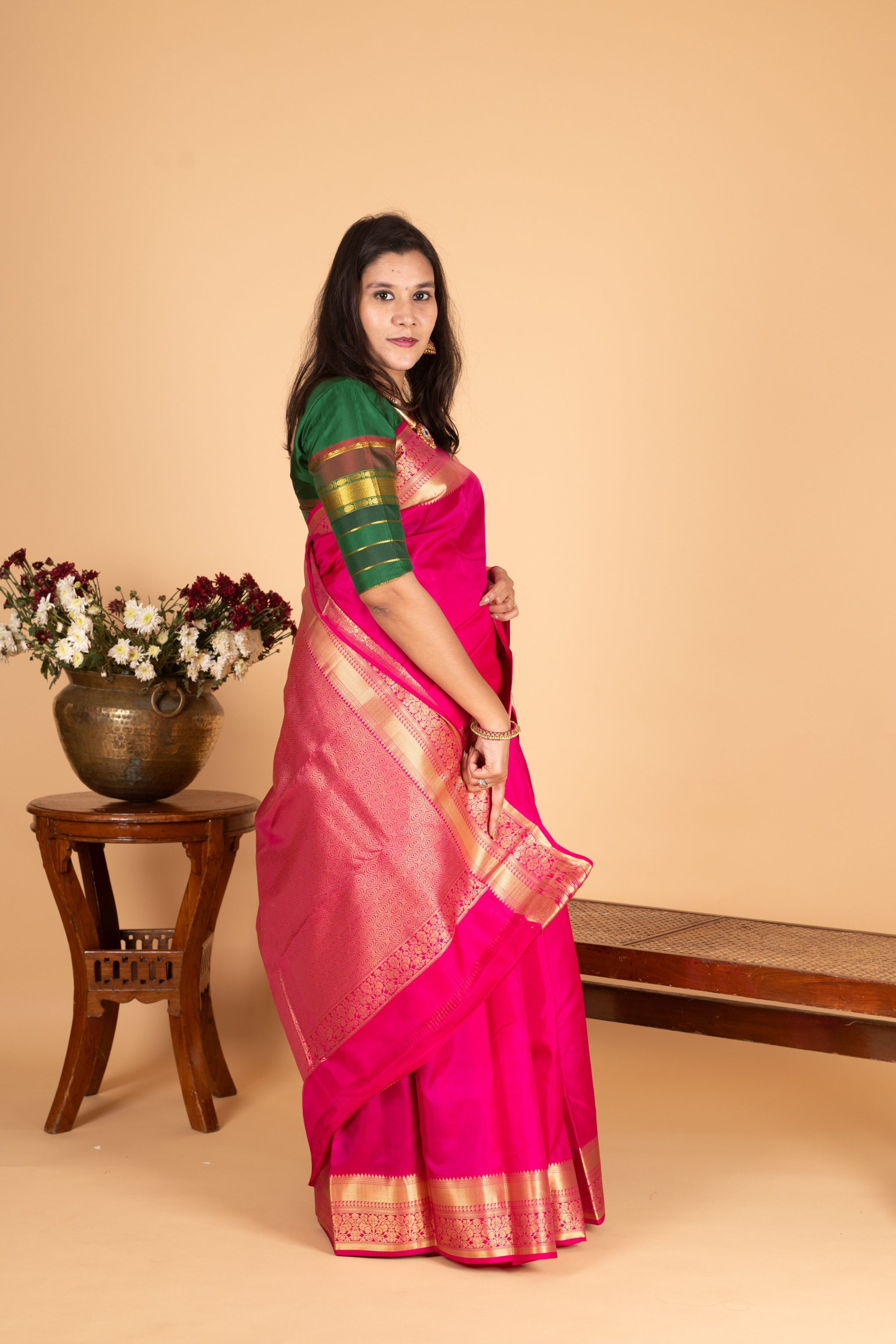 Please never machine-wash or tumble dry your silk saree. These methods can severely damage its fabric and zari work.