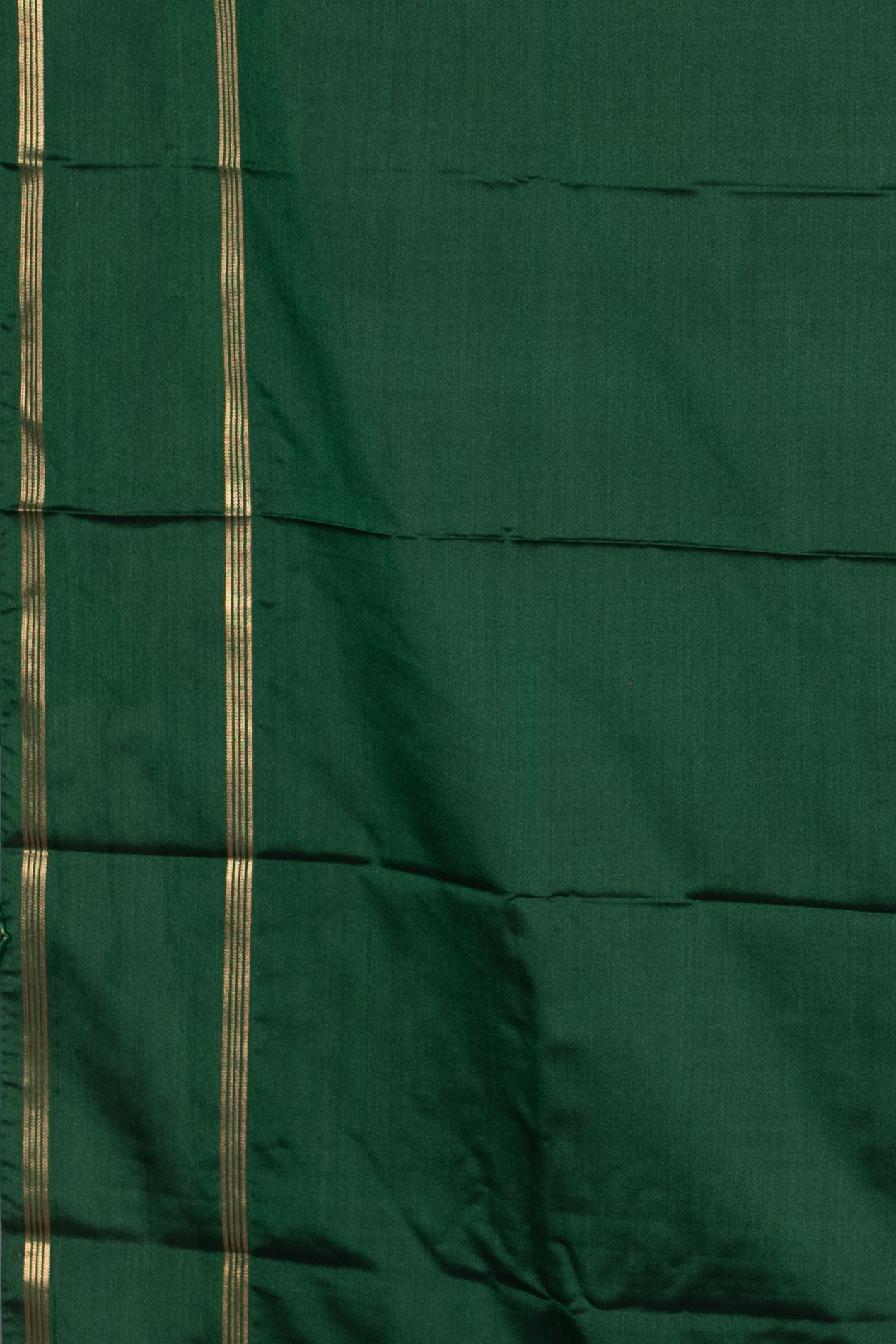 This elegant saree is a magnificent showcase of two deep, jewel-toned colors—a vibrant Royal Blue body dramatically contrasted by a deep Bottle Green border. Woven in semi-silk, it offers a luxurious look with a comfortable, manageable drape, making it an excellent choice for festive occasions.The Royal Blue field is adorned with delicate, continuous gold zari stripes or dotted lines running vertically through the fabric.Ideal for festive ceremonies, traditional parties, and celebratory family events.