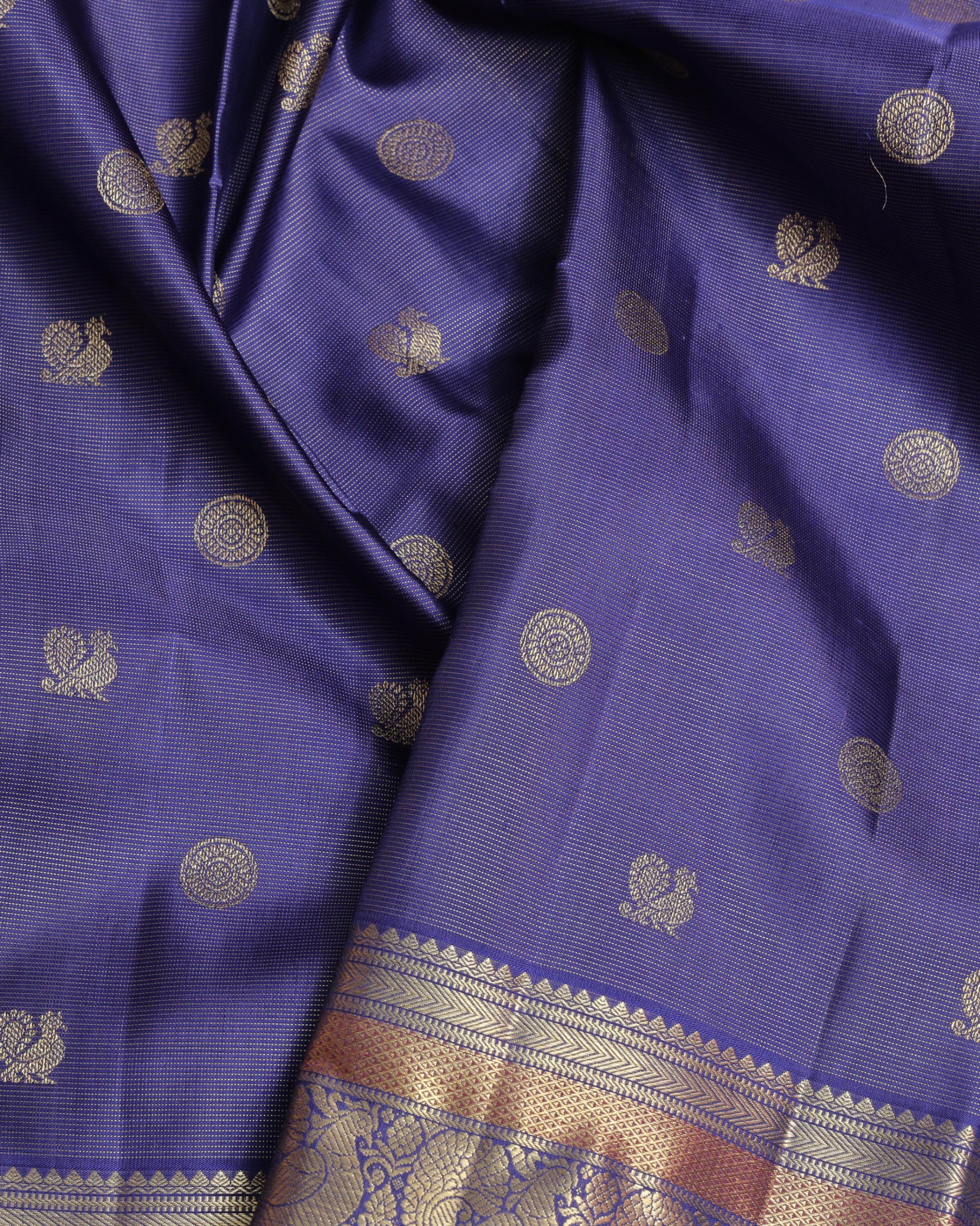 Saree Colour: Royal Blue Zari: Gold Weaving Technique: Traditional Weave Blouse Colour: Royal Blue