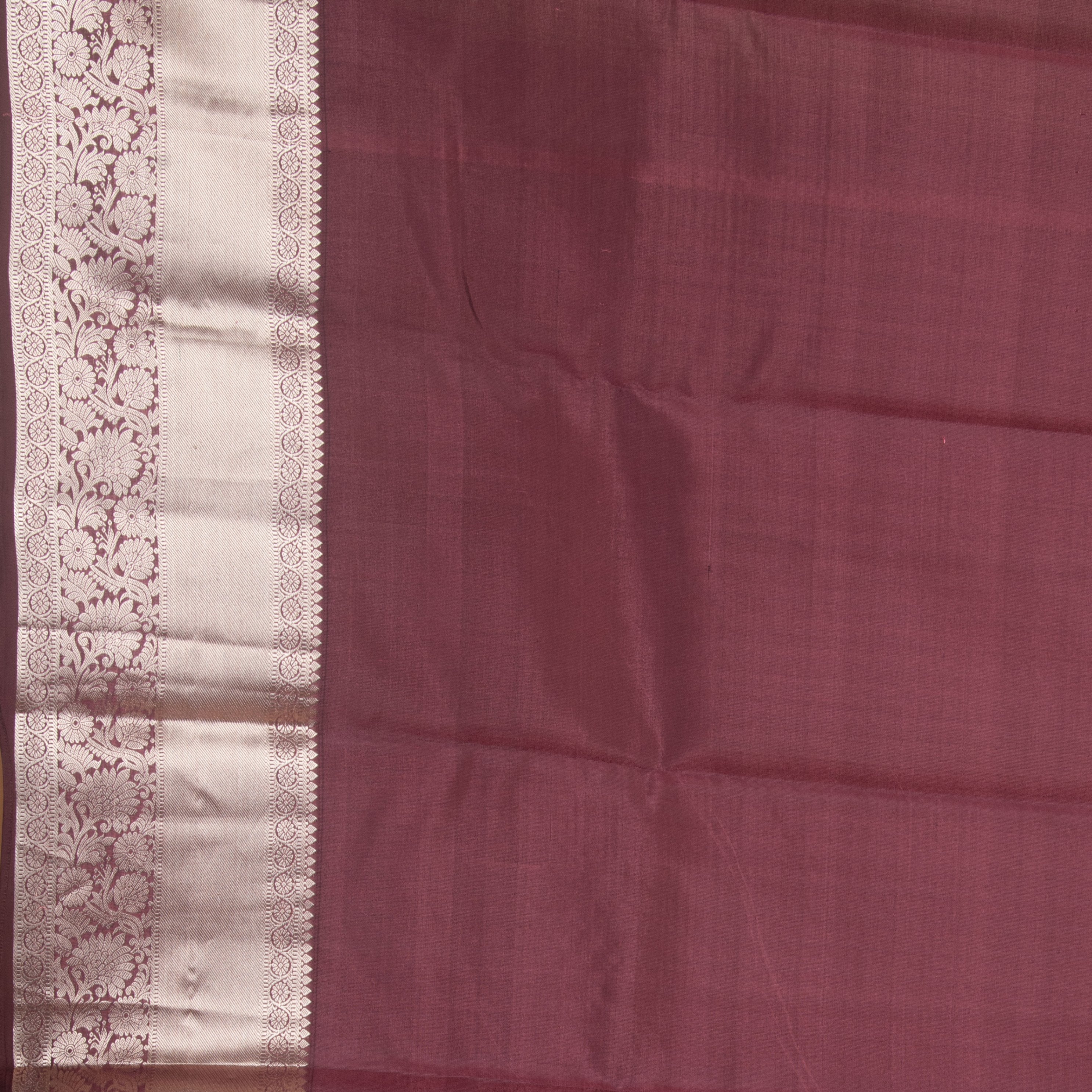 Saree Colour: Salmon Pink Zari: Silver Weaving Technique: Korvai weave Blouse Colour: Rosewood pink