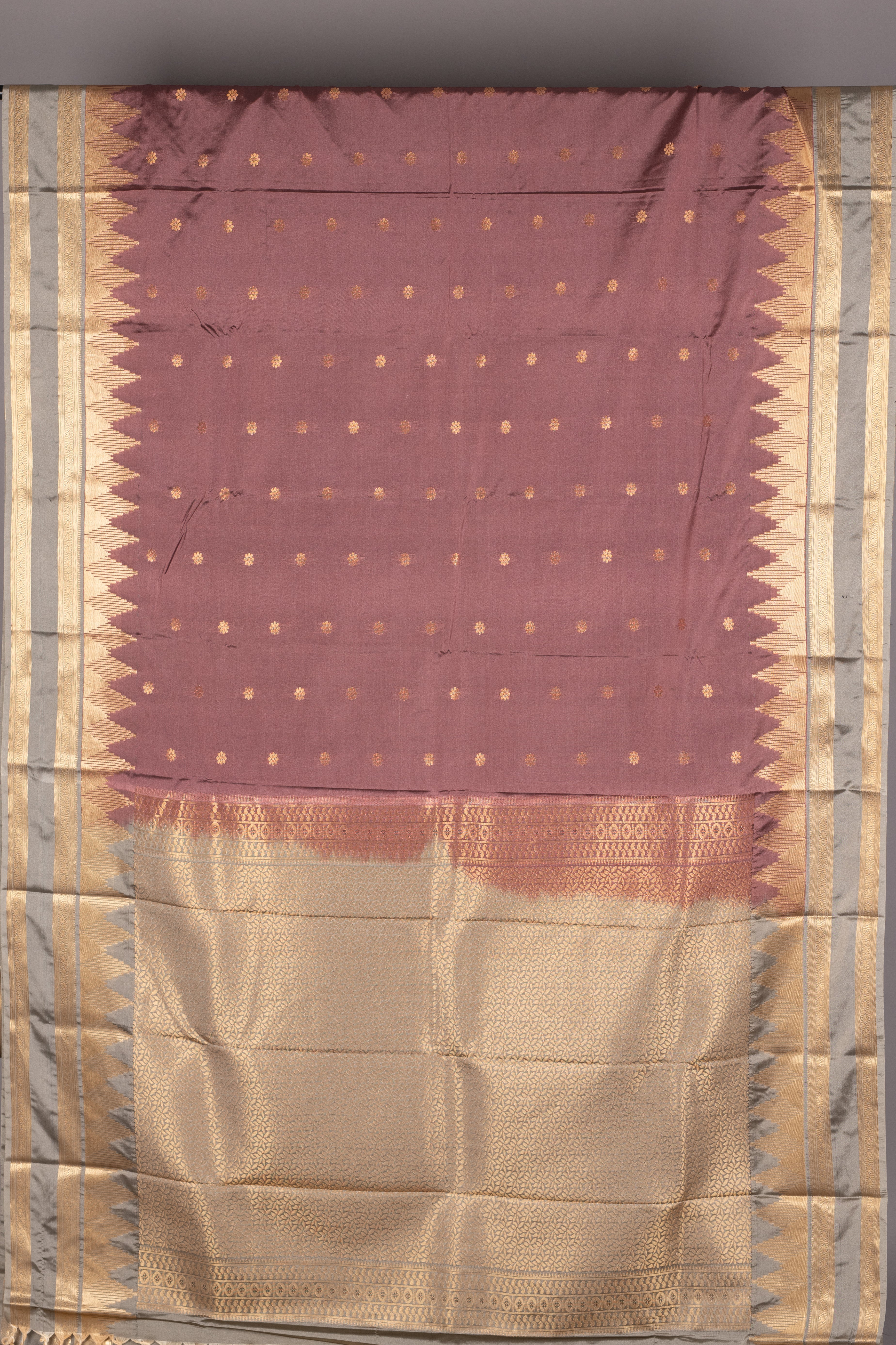Saree Colour: Velvet Rose Zari: Gold Weaving Technique: Korvai Weave Blouse Colour: Grey