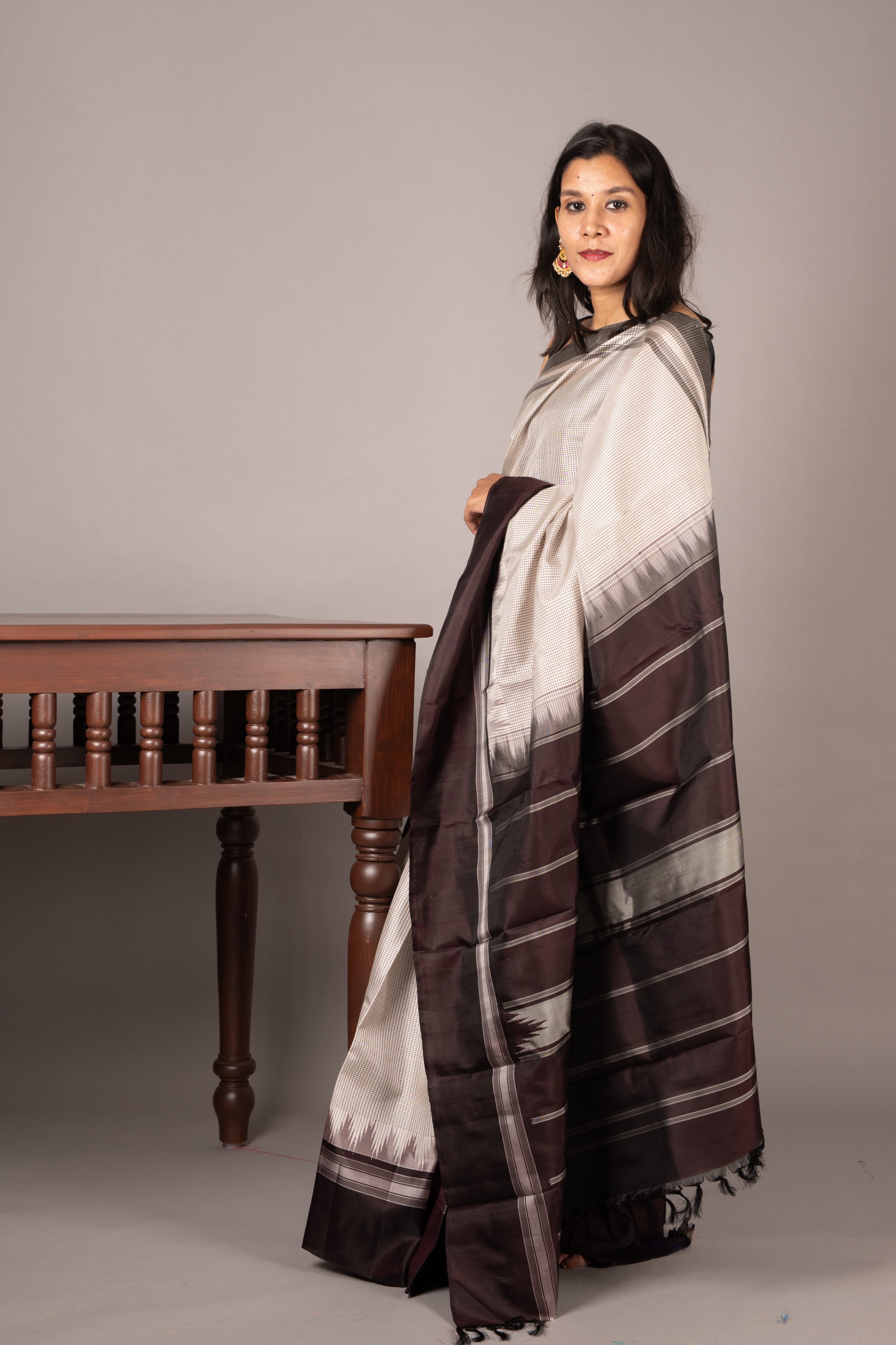 White and Night Brown Zero Zari Pure kanjivaram silk saree
